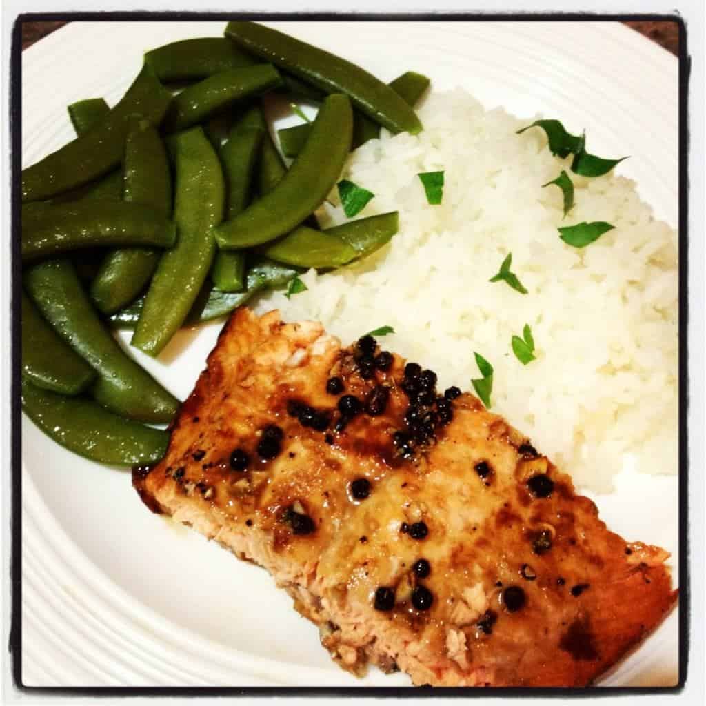 Here is a simple salmon recipe that uses common household ingredients and can be ready in a hurry. Salmon is an excellent source of omega 3 fatty acids essential for heart health as well as brain, nerve and eye functioning. Aim for 2-3 servings of fish per week (one serving is 75g or 2.5oz).